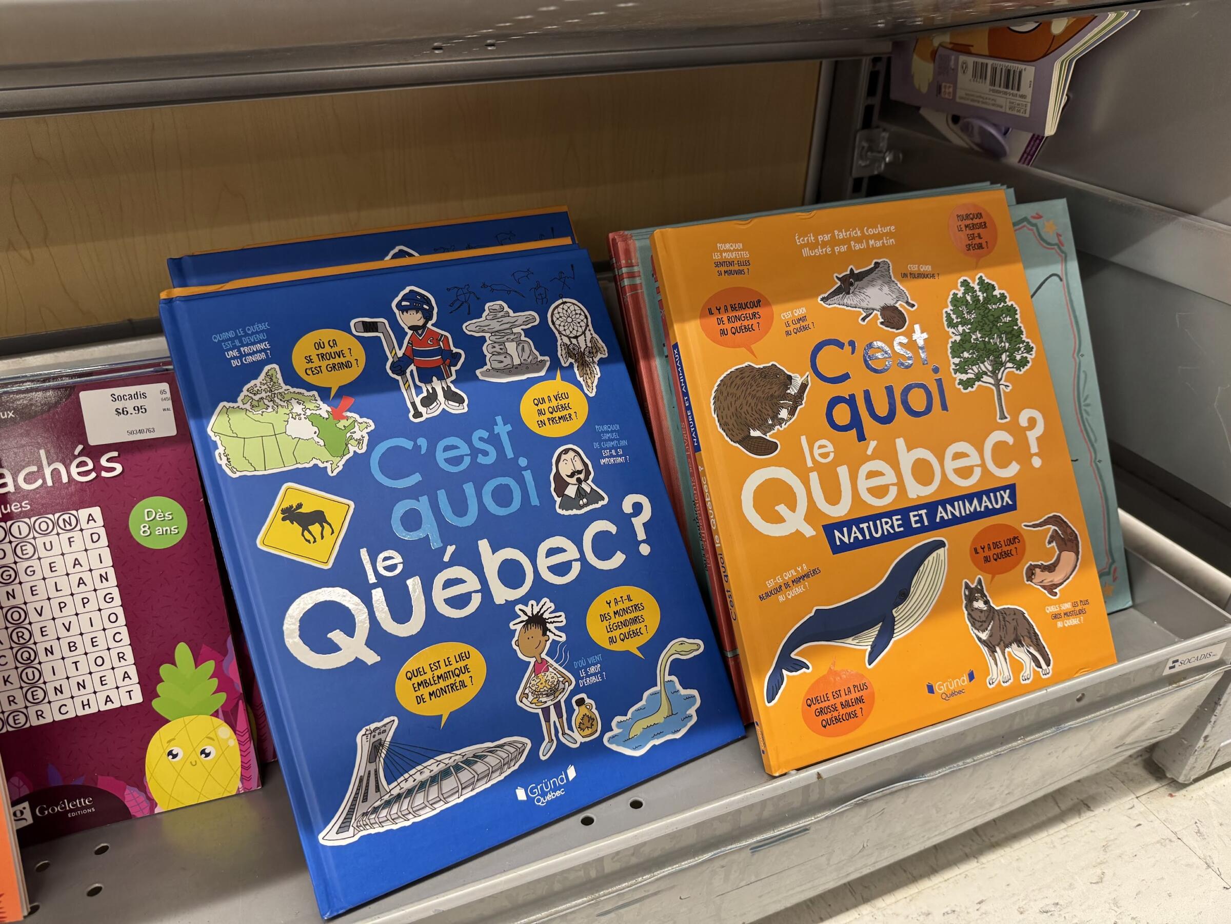 これはケベック州の「フランス語憲章(Bill 101)」という法律によるもので、公共の表示ではフランス語が優先されることが定められています。