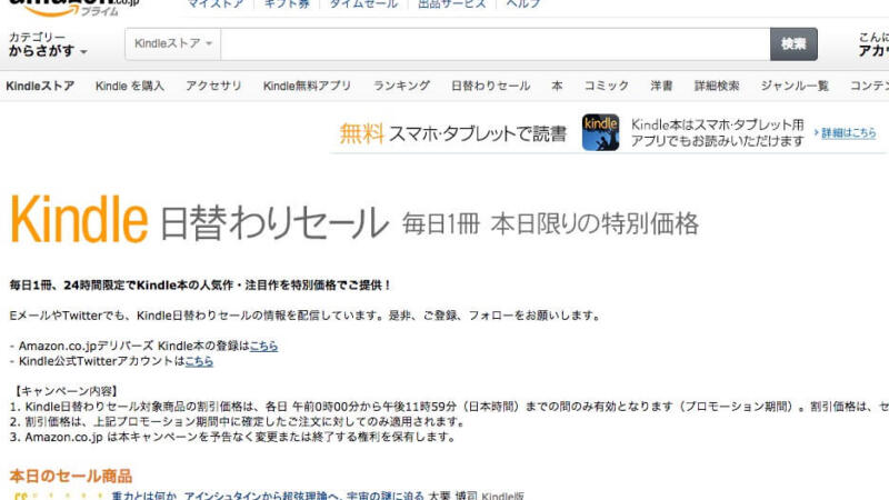 Amazon電子書籍ストア「Kindleストア」ではほぼ毎日、セールが行われてい…